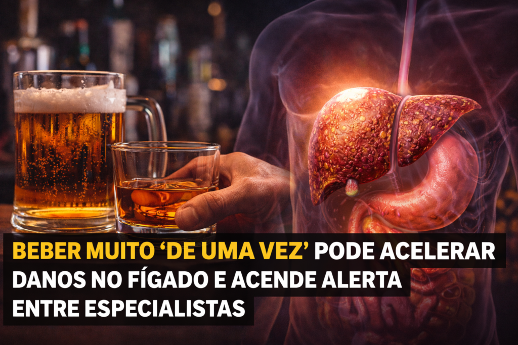 Estudo da Universidade do Sul da Califórnia mostra que episódios pontuais de consumo excessivo de álcool elevam fortemente o risco de fibrose avançada, sobretudo em pessoas com doença hepática gordurosa ligada à disfunção metabólica