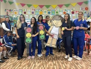 Na prática, a atividade foi organizada em quatro “ilhas de atenção” temáticas com abordagem lúdica: limpeza das mãos, cuidados com o corpo durante o banho, palestra informativa sobre saúde e o tema “o toque”, voltado para a identificação de limites corporais e prevenção do abuso sexual infantil.