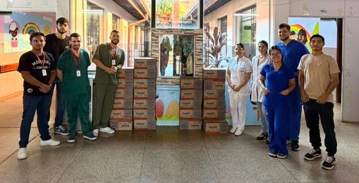PEDRO JUAN CABALLERO. A ala pediátrica do Hospital Regional de Pedro Juan Caballero recebeu a doação de 300 litros de leite, resultado de uma ação solidária promovida por acadêmicos de medicina da Universidade Central do Paraguai (UCP) e da Universidade Interamericana, por meio dos internos da Atlética Demolidor.